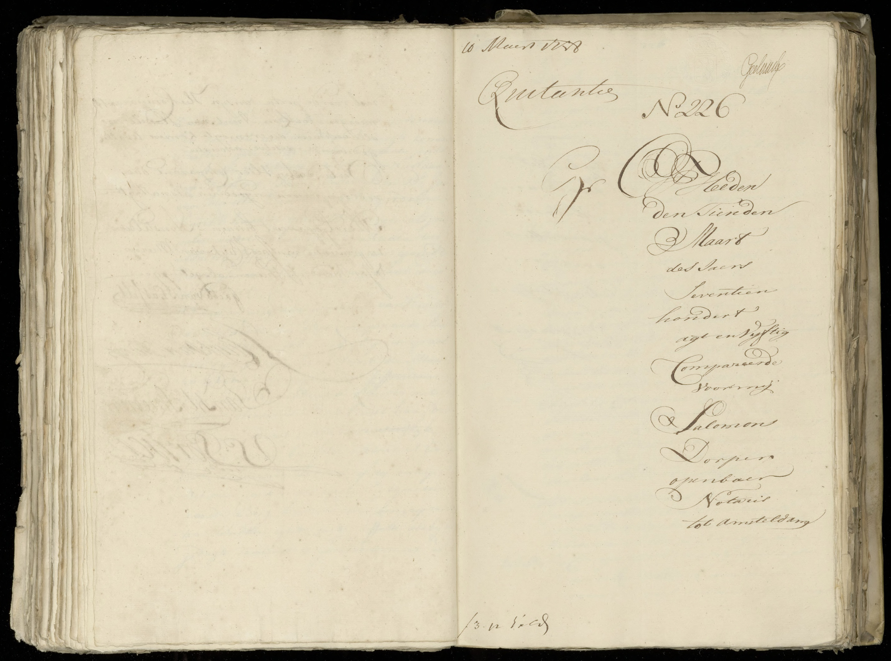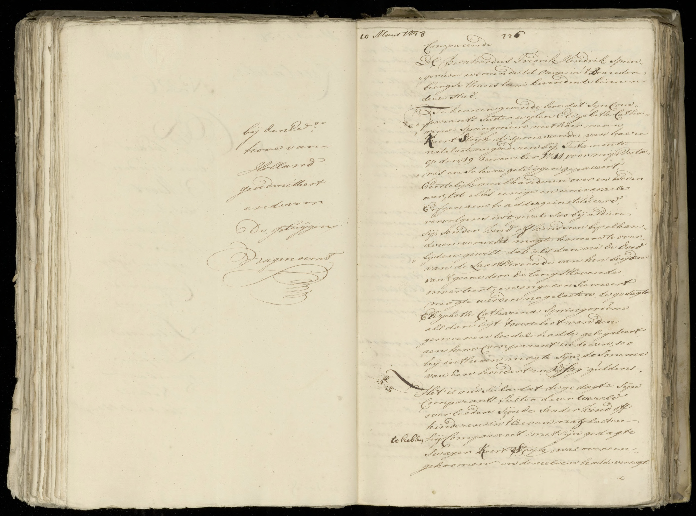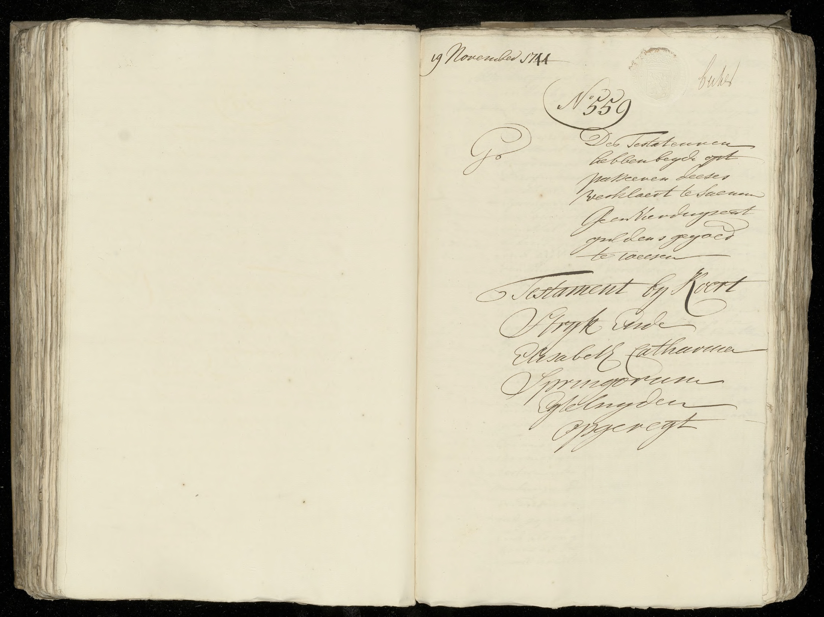 On this day, the nineteenth of November in the year one thousand seven hundred and forty-four, in the evening at about seven o’clock, appeared before me, Salomon Dorper, public notary in Amsterdam, admitted by the Noble Court of Holland, and before the witnesses hereinafter named: